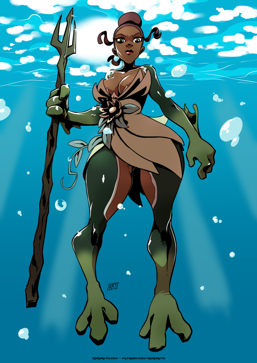 Sexto dibujo en mi serie de princesas Disney como chicas monstruo. Esta vez es Tiana como una Kuo-toa, raza fantastica de ranas. Variante desnuda en mi patreon. Dibujos previos: Mulan – Jasmine – Moana – Merida – Rapunzel –
