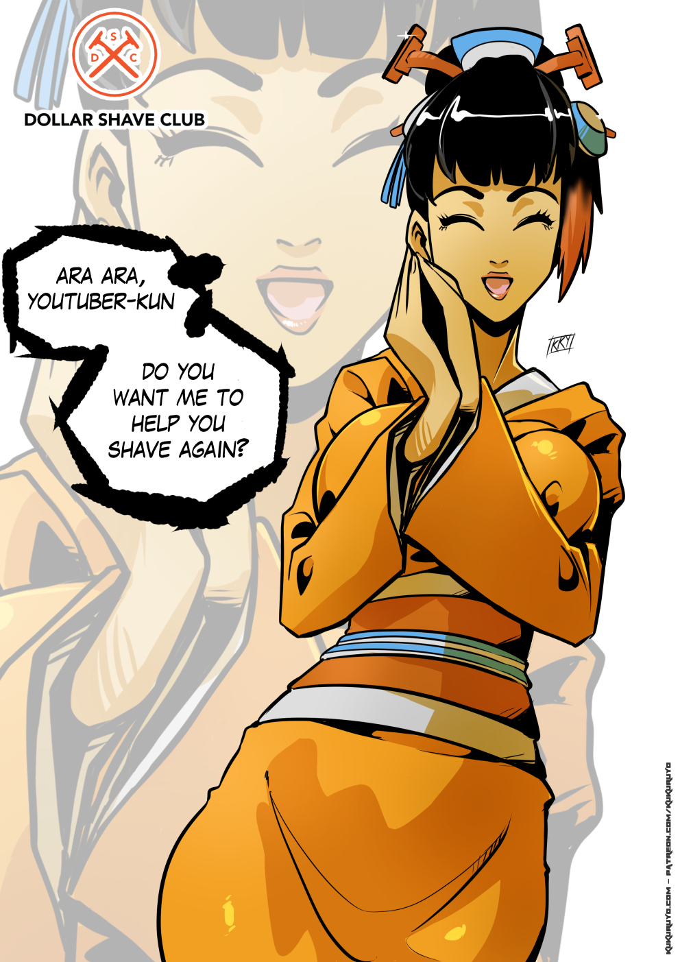 Los anuncios de youtube parecen estar dominados por un pequeño grupo de sponsors que se repiten tanto que ya son memes. Así que tuve esta idea de hacerlos como un anime harem. Las primeras fueron Express VPN, NordVPN y Raid shadow legends, la segunda Raycon, y ahora toca Dollar shave club. Hay variante desnuda en mi patreon, y los pasos del dibujo.