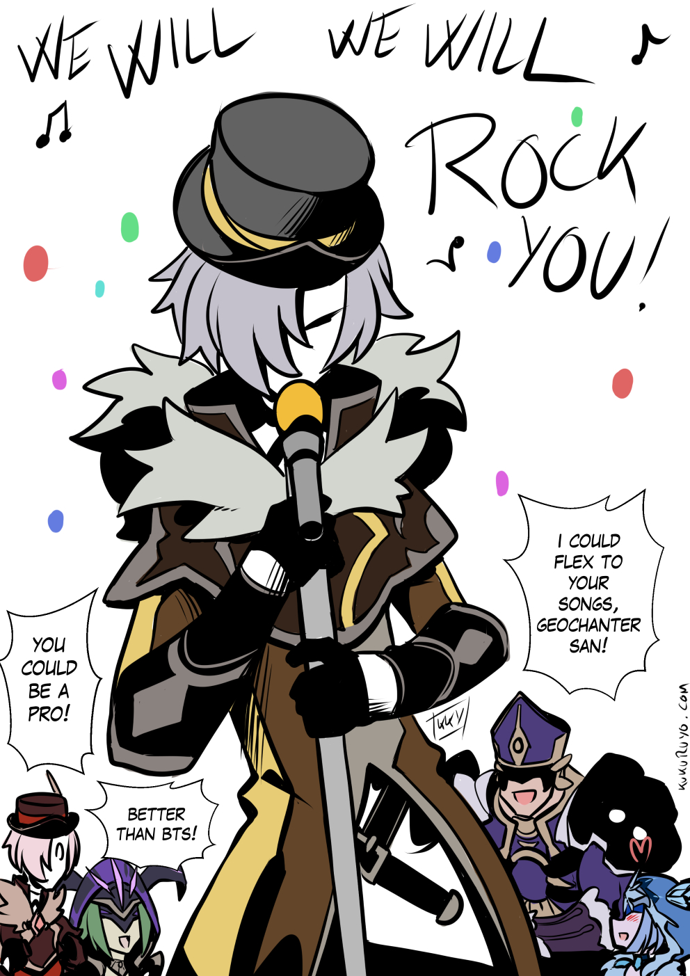 I recently did a drawing of a group of Fatui being wholesome to the newcomer Cryo Cicin mage, and it was well received so it was followed by Electrohammer vanguard, and now the Geochanter. And the Electro cicin is still a masochist. Check my commission rates and support my patreon for mature content.
