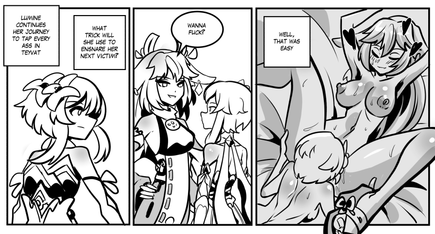 She can’t keep getting away with it!. I have some more with Niangguang , Jean-Barbara, Beidou, Yoimiya , Sara, Eula, Baal, Yoimiya again, Yae, Signora, Hu Tao, Shenhe,